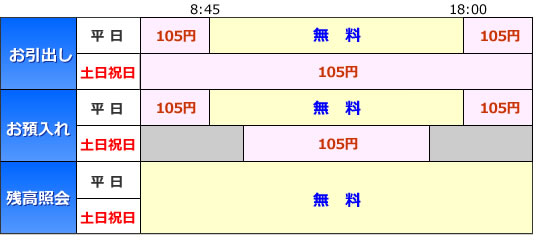 セブン銀行、イオン銀行ともに平日営業時間内の入出金手数料は無料です。