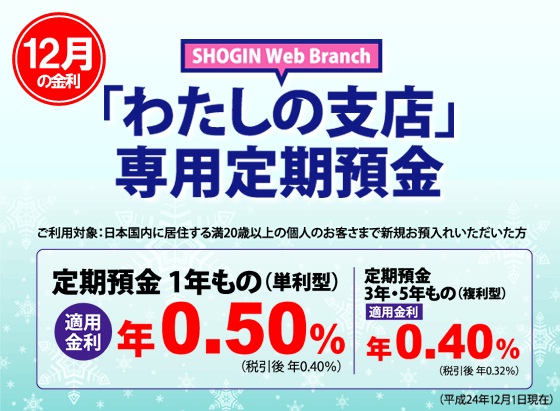 荘内銀行 わたしの支店 専用定期預金 2012年12月金利決定 1年100万円以上 年0.5%