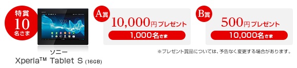 - 特賞 ソニー Xperia Tablet S (16GB)