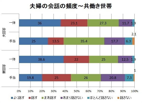 また、共働き世帯で、「一体型」と「手当型」の家計管理タイプ別に、夫婦の会話の