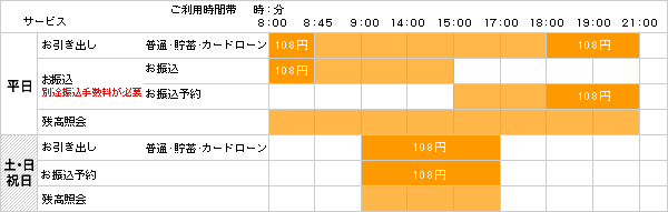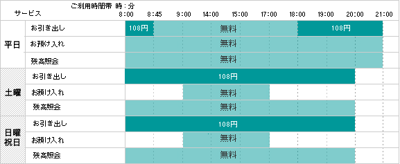 平日の日中時間帯はイオン銀行、ゆうちょ銀行のATM利用手数料が無料になります。