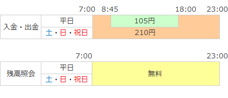 | セブン銀行ATM | 105円 | 105円 | 210円(うち手数料105円) |