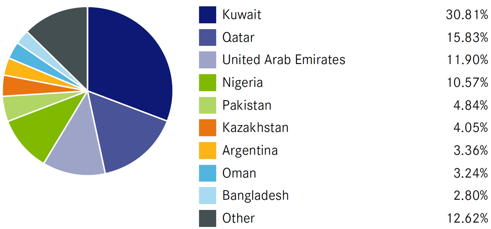中東の3国で約60%、金融も57.19%と独特な構成です。
