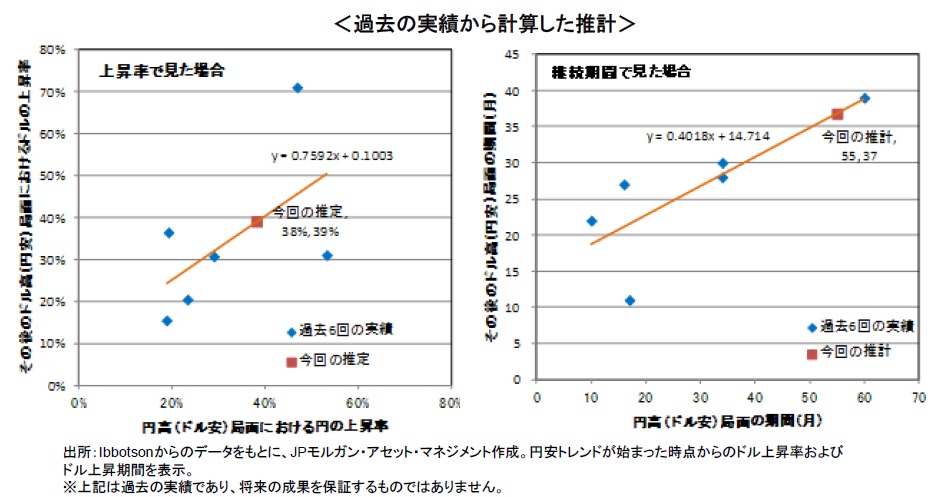 更に過去の実績から計算したらどのくらい円安まで行くのかを計算しています。