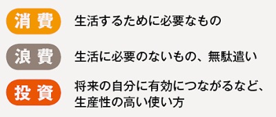 まず支出を「消費」「浪費」「投資」のいずれかに分類します