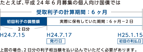 この場合、購入時に、半年に満たない分の日割り計算された利子相当額を、あらかじめ払い込んでいただく必要があります。