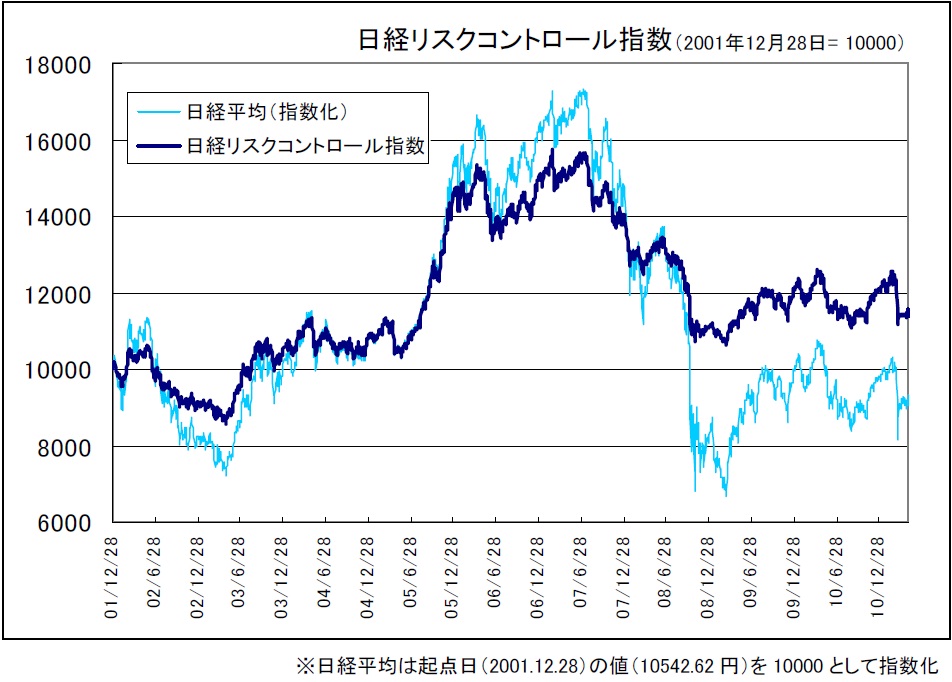算出を始めた「TOPIXリスクコントロール指数(変動率5%)(pdf)」。
