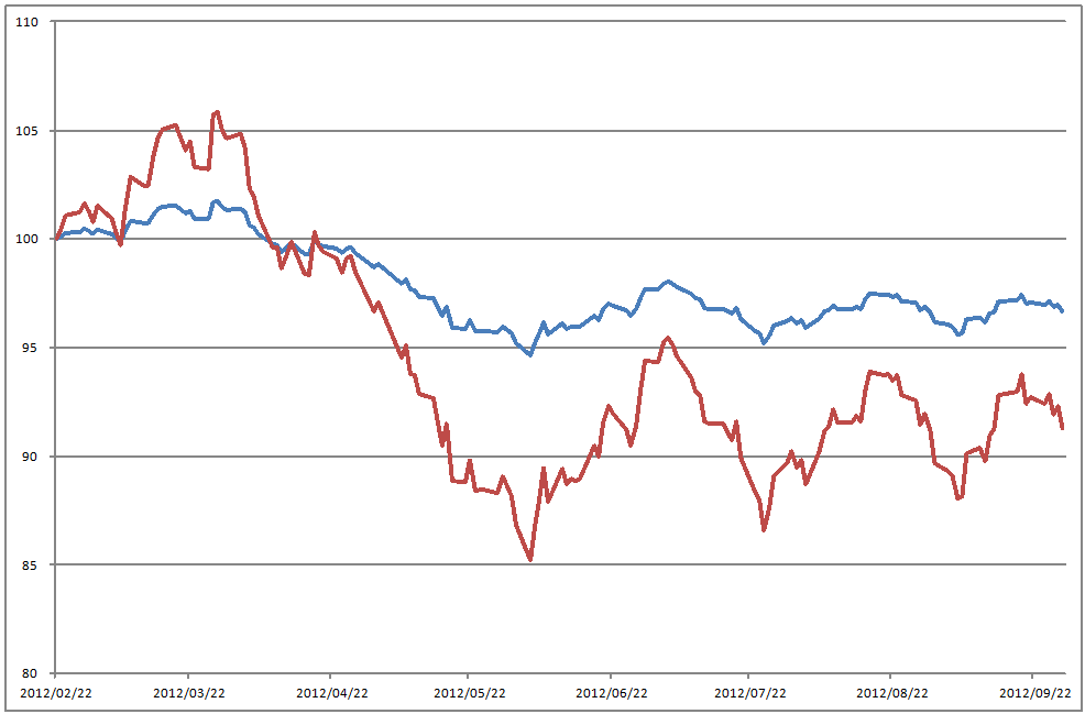 MAXISトピックスリスクコントロール(5%)とMAXIS トピックス上場投信を比較 2012年9月