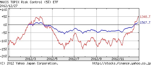 MAXISトピックスリスクコントロール(5%)とMAXIS トピックス上場投信を比較 2013年1月