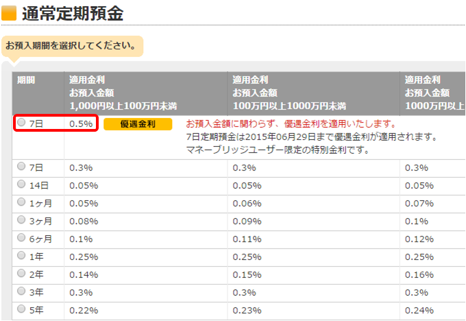 マネーブリッジユーザーは1週間もの定期預金の金利が年0.50%に!