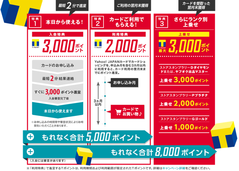 最短2分で最大8,000Tポイントが手に入る入会キャンペーン